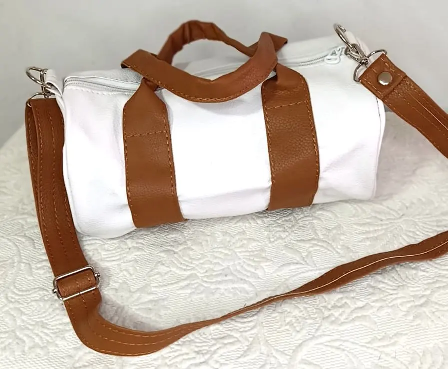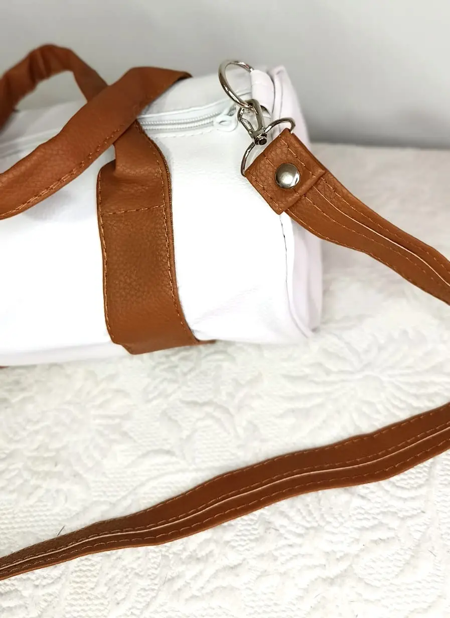 Bolso color blanco con correa y manija color suela confeccionado en cuero pu