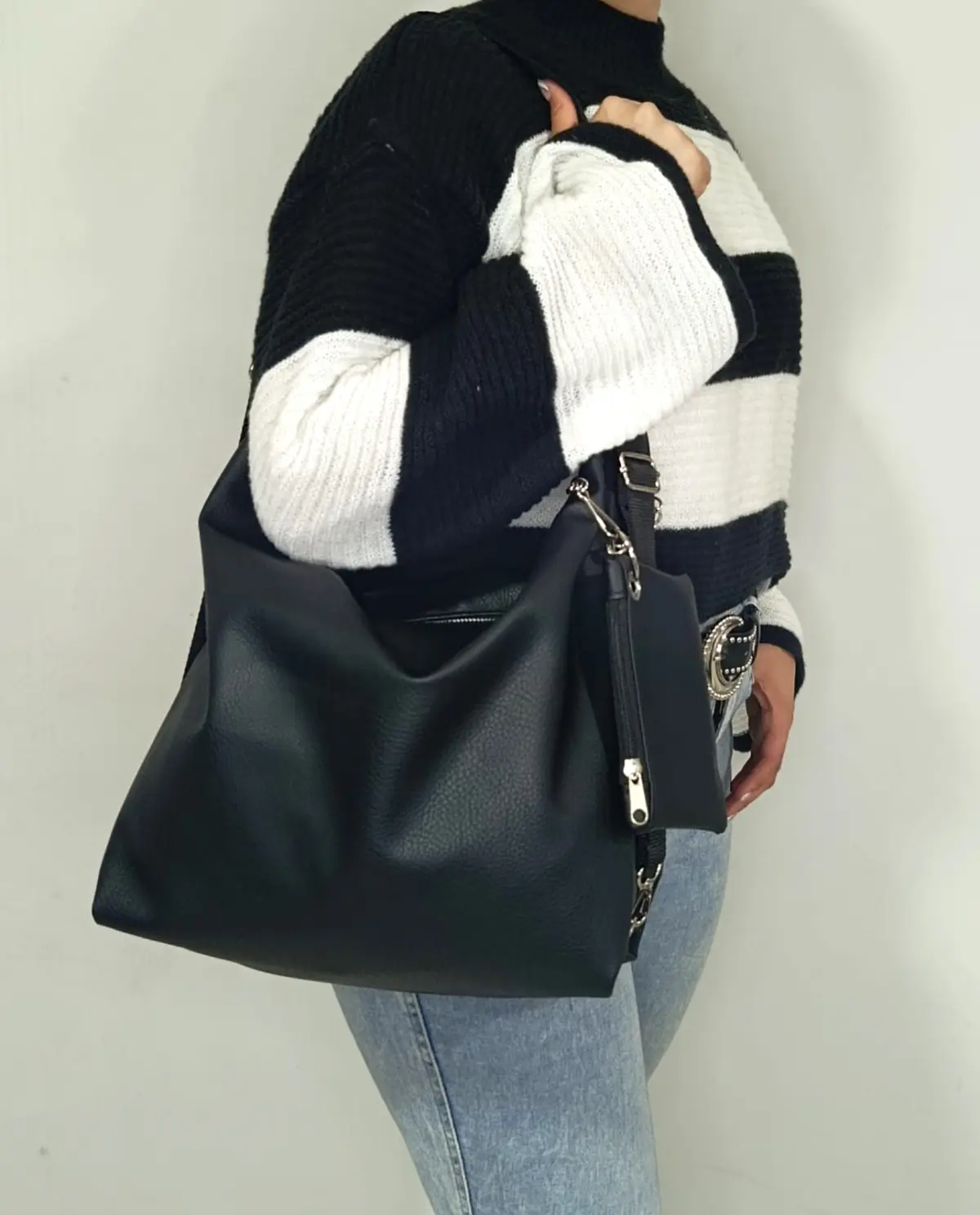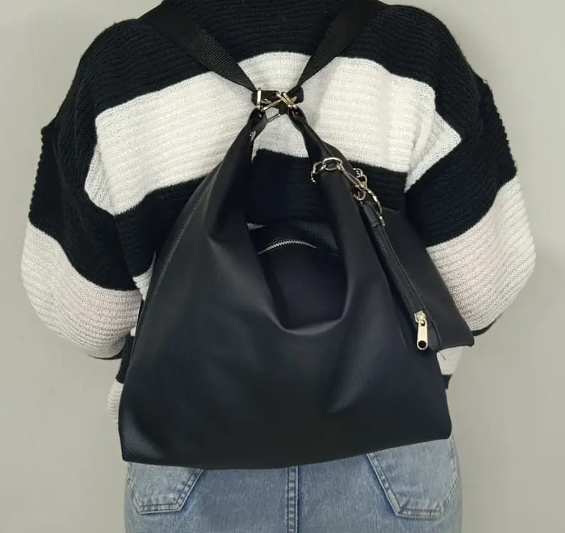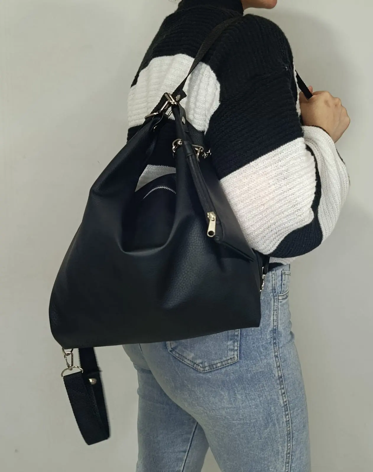 Bolso negro elaborado de cuero pu, puede usarse también como mochila