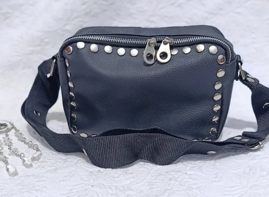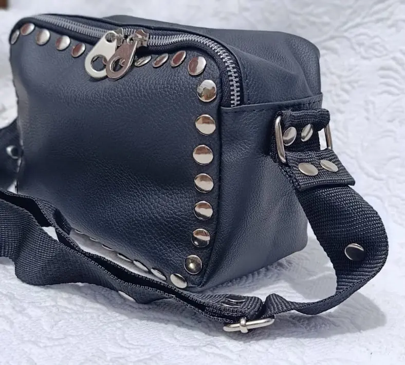 Morral con tachas elaborada en cuero pu